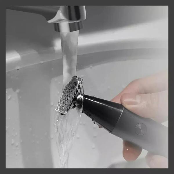 Trimer je potpuno vodootporan i pogodan za mokro i suho korištenje. Ovaj IPX7 vodootporan uređaj omogućuje vam mokro brijanje uz pjenu za brijanje, smanjujući iritaciju. Oštrica postiže izvrsne rezultate čak i na teško dostupnim mjestima kao što su brada i vrat. Ima potpuno perivo vodonepropusno kućište, čisto i higijensko nakon upotrebe.