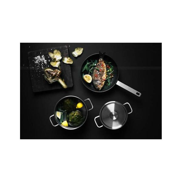 Oplemenite okus pomoću AEG-ovog trodijelnog kompleta posuđa. Komplet koji se sastoji od tave za prženje (24 cm) i dvije posude s drškom (16 cm, 20 cm) sadrži prave alate za svladavanje recepata.
