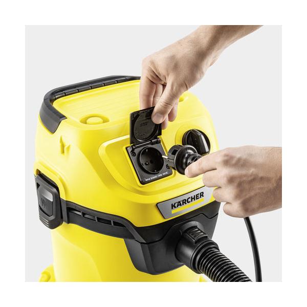 Usisavač za mokro i suho čišćenje WD 3 P V-17/4/20 Workshop je super snažan, energetski učinkovit i kompaktan- sa samo 1000 W potrošnje energije. Specijalni usisivač za hobi radionicu uvjerljiv je s usisnim crijevom od 2 m, kabelom od 4 m, 2 plastične cijevi, podnom mlaznicom Clips, mlaznicom za pukotine, tankim crijevom za alat, adapterom za alat i usisnom četkom s mekim vlaknima. Također praktično: integrirana utičnica omogućuje spajanje električnih alata izravno na usisavač. Usisavač se uključuje ili isključuje preko priključenog električnog alata. Stroj također ima robusni plastični spremnik od 17 l, vrećicu za filter od flisa i podnu mlaznicu Clips za brzo i dubinsko čišćenje poda. Fina i gruba prljavština može se ukloniti u trenu. Osjetljivije površine također se mogu jednostavno usisati pomoću usisne četke. Odvojiva ručka omogućuje spajanje mlaznica izravno na usisno crijevo, čime se omogućuje rad bez napora u skučenim prostorima. Korisna funkcija puhala za uklanjanje prljavštine koristi se gdje god usisavanje nije moguće.