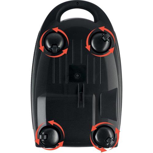 Gumirani točkovi.Točkovi obloženi gumom sprječavaju oštećivanje osjetljivog poda kao što je parket i daju stabilnost u radu. Usisivač ne ostavlja bilo kakve tragove ili ogrebotine kada se pomiče po mekim ili tvrdim površinama.