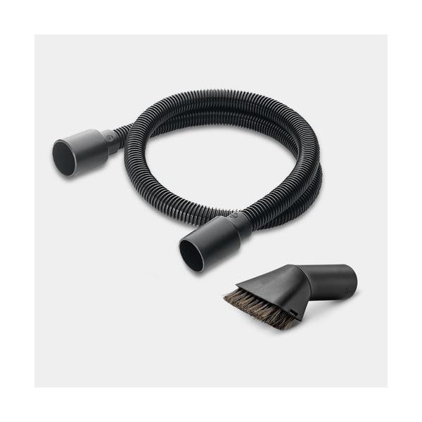 Usisavač za mokro i suho čišćenje WD 3 P V-17/4/20 Workshop je super snažan, energetski učinkovit i kompaktan- sa samo 1000 W potrošnje energije. Specijalni usisivač za hobi radionicu uvjerljiv je s usisnim crijevom od 2 m, kabelom od 4 m, 2 plastične cijevi, podnom mlaznicom Clips, mlaznicom za pukotine, tankim crijevom za alat, adapterom za alat i usisnom četkom s mekim vlaknima. Također praktično: integrirana utičnica omogućuje spajanje električnih alata izravno na usisavač. Usisavač se uključuje ili isključuje preko priključenog električnog alata. Stroj također ima robusni plastični spremnik od 17 l, vrećicu za filter od flisa i podnu mlaznicu Clips za brzo i dubinsko čišćenje poda. Fina i gruba prljavština može se ukloniti u trenu. Osjetljivije površine također se mogu jednostavno usisati pomoću usisne četke. Odvojiva ručka omogućuje spajanje mlaznica izravno na usisno crijevo, čime se omogućuje rad bez napora u skučenim prostorima. Korisna funkcija puhala za uklanjanje prljavštine koristi se gdje god usisavanje nije moguće.