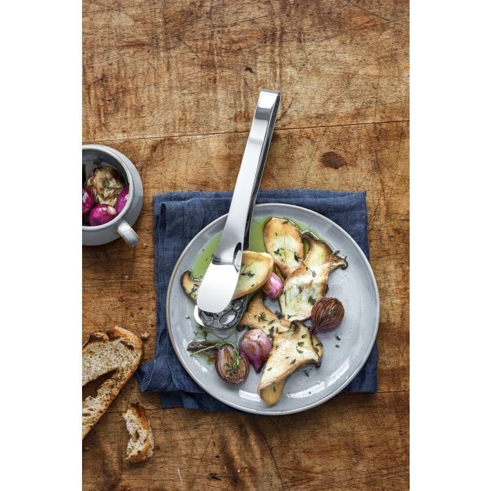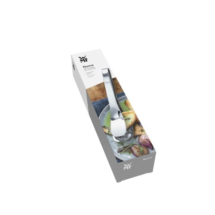 Pokupite sve što želite i jednostavno pustite da višak iscuri: nema problema s Nuova hvataljkama za posluživanje s otvorima za kapanje. Dok meso, povrće, prilozi ili čak salata završavaju na tanjuru u precizno porcioniranom obliku, marinade, mast i voda jednostavno otječu kroz donju posudu. Pametno izrađene jednodijelne kuhinjske hvataljke su naravno također prikladne za korištenje kao hvataljke za roštilj. Nuova hvataljke za posluživanje isporučuju se u visokokvalitetnoj, ilustriranoj sklopivoj kutiji, koja također dobro izgleda kao poklon pakiranje. Kolekcija pribora za jelo Nuova iz WMF-a uključuje gotovo 50 posebnih komada pribora za jelo - od hvataljki za tjesteninu do žlica za med, od pribora za jelo za ribu do noževa za sir. Svojim bezvremenskim, jednostavnim dizajnom Nuova ne samo da se uklapa u svaki ambijent, već i uz svaki drugi pribor za jelo. Svi dijelovi pribora za jelo savršeno leže u ruci i oduševljavaju svojom maksimalnom funkcionalnošću u svakodnevnom životu. Izrađena od visokokvalitetnog Cromargan®: nehrđajućeg čelika 18/10, Nuova se naravno lako čisti, može se prati u perilici posuđa, potpuno je bez okusa, vrlo izdržljiva i otporna na prehrambene kiseline.