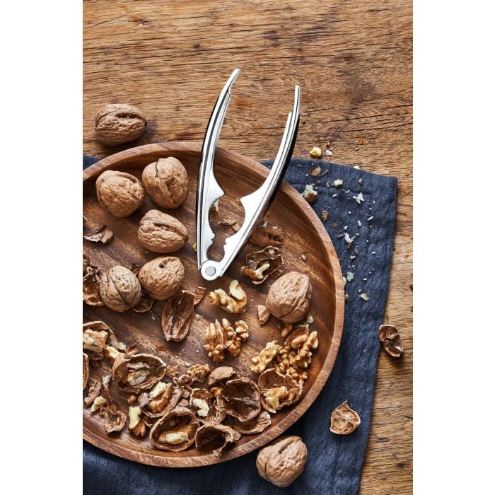 Drobilica za orahe Nut iz WMF-a kombinira dugotrajnu izvedbu s upečatljivim dizajnom. To ga čini savršenim alatom za lako lomljenje ljuski orašastih plodova kao što su orasi, makadamija orasi, lješnjaci i još mnogo toga. Užljebljena unutrašnjost sigurno drži matice, a ergonomski dizajn osigurava udobno, iznimno ugodno rukovanje. Izrađena od robusnog, poliranog lijevanog metala, ova je drobilica za orahe otporna na kiseline, može se prati u perilici posuđa i iznimno je izdržljiva - za dugotrajnu, impresivnu funkcionalnost. Njegova elegantna estetika i pažljiva izrada čine drobilicu Nut iz WMF-a savršenim dodatkom svakom stoliću za kavu ili kuhinji.
