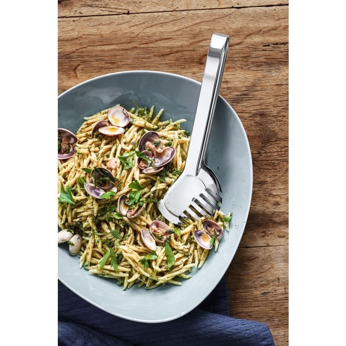 Izvanredan pribor za jelo i kuhinjski pribor koji blista modernom funkcionalnošću i izvrsnom izvedbom: hvataljke za tjesteninu iz WMF-a su visokokvalitetan, izdržljiv i elegantan dodatak svakoj kuhinji. Sofisticirana konstrukcija je savršena za savršeno posluživanje tjestenine, posebno dugih vrsta tjestenine kao što su linguine i špageti. Izrađene od robusnog, izdržljivog Cromargan®: nehrđajućeg čelika 18/10 u uobičajenoj visokoj WMF kvaliteti, ove praktične hvataljke za tjesteninu mogu se prati u perilici posuđa, lako se čiste i otporne su na prehrambene kiseline - za uvjerljivu dugotrajnost i elegantnu estetiku koja impresionira vrijeme i ponovno vrijeme. Isporučuje se u poklon kutiji s ilustracijom funkcija i značajki. Više od 160 godina WMF razvija pribor za jelo i kuhinjsko posuđe s najvećom pažnjom i velikom pažnjom za detalje koji su jednostavno nezamjenjivi u kuhinji.