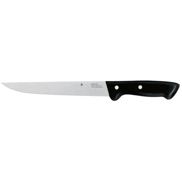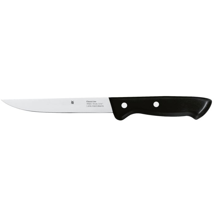 7-dijelni set noževa Classic Line iz WMF-a savršen je set za početnike i prvi kuhinjski pribor. S tradicionalno zakovanim ručkama bezvremenskog dizajna i ojačanim oštricama izrađenim od posebnog čelika za oštrice otpornog na koroziju i kiselinu, koje su znatno superiornije od oštrica od nehrđajućeg čelika u pogledu robusnosti, WMF Classic Line impresionira u svakodnevnom kuhinjskom životu. Kuhinjski noževi savršeno leže u ruci i osiguravaju siguran osjećaj pri rezanju i sjeckanju mesa, ribe, povrća i začinskog bilja te mnogih, mnogih drugih sastojaka. 7-dijelni set noževa sastoji se od pet visokokvalitetnih kuhinjskih noževa, čelika za oštrenje i bloka noževa koji štedi prostor od visokokvalitetnog bukovog drva za sigurno pohranjivanje noževa na dohvat ruke.