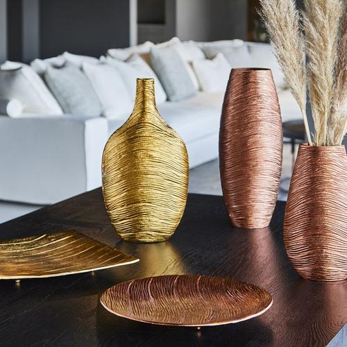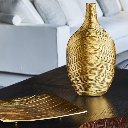 Zlatna vaza boca 41 cm hGlavni materijal: AluminijDimenzija / Vanjski promjer u cm: 22.00Širina u cm. : 11.00 Visina u cm. : 40,00Brand:Andrea FontebassoBoja:ZlatnaMaterijal:Aluminij