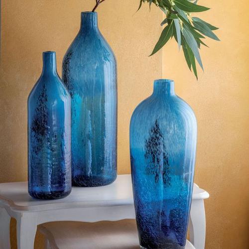 Liniju Crash Andrea Fontebasso karakteriziraju električno plave vaze različitih oblika i veličina. Njihova posebnost je efekt obojenog plavog stakla, inspiriran murano puhanim staklom, što ih čini elegantnim i sofisticiranim dodatkom za opremanje koji će uljepšati svaki kutak doma. Ova vaza visine 40 cm može se koristiti samostalno ili u kompletu, a moguće je i s dodatkom drugih ukrasa poput cvijeća s dugim peteljkama i ukrasnih stabljika.