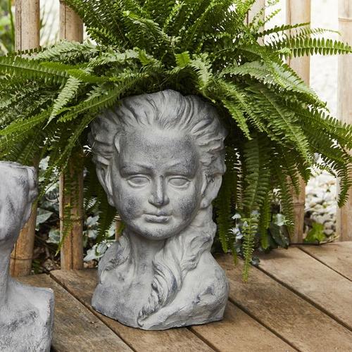 Cache pot žensko poprsje cm47hGlavni materijal: MgO (magnezijev oksid)Dimenzija / Vanjski promjer u cm: 27,00Širina u cm. : 35.00Visina u cm. : 47.00Brand: Andrea FontebassoBoja: SivaMaterijal: Magnezijev oksid