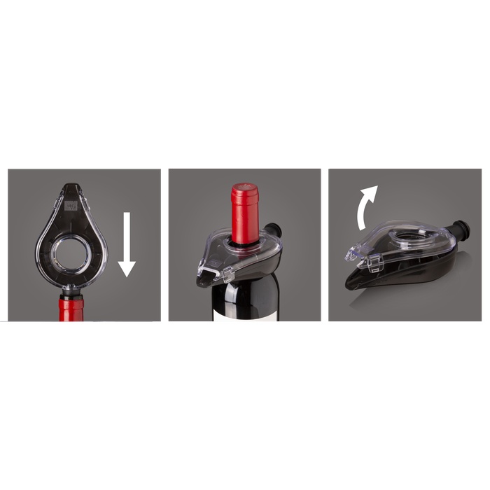 Umetnite perlator za vino u bocu vina i natočite. Kako vino teče, ono se prozračuje na licu mjesta, pojačavajući svoj miris i omekšavajući tanine. Prozirni dizajn omogućuje vam da vidite proces prozračivanja na djelu. Nakon upotrebe jednostavno ga izvadite i isperite radi lakšeg čišćenja.
