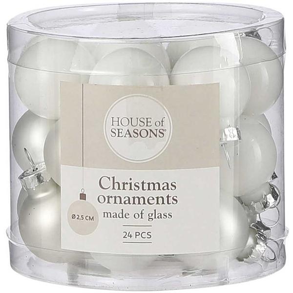 BOŽIĆNE KUGLE 2,5CM SET 24/1 BIJELE STAKLO